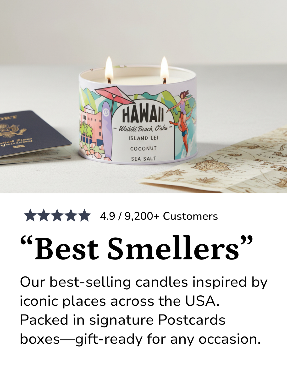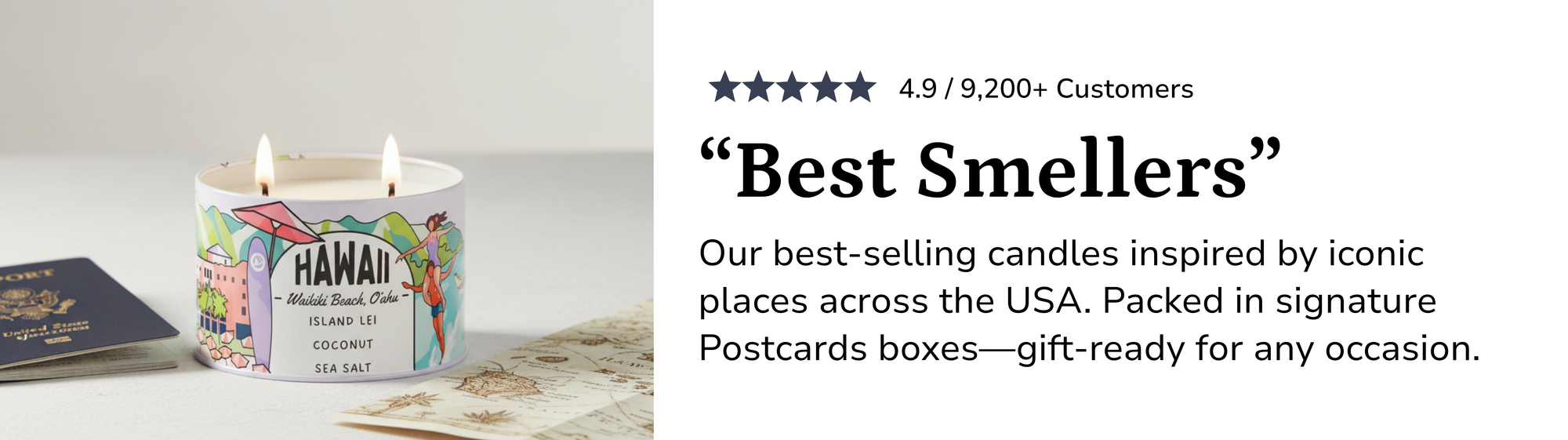 Postcards candles are souvenirs for the soul — hand-poured to capture life’s best chapters. Relive them nightly, or gift someone their own piece of paradise.