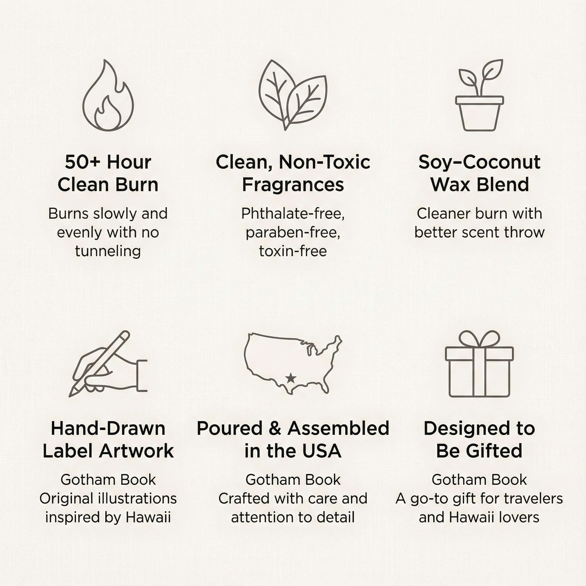 Set off on a sensory journey with the Adventure Pack — three iconic scents that capture the spirit of exploration and the magic of Hawaii’s most breathtaking landscapes. Whether you’re chasing waves, winding along scenic roads, or dreaming of rugged cliffs, this trio brings the feeling of a tropical escape straight to your home.
