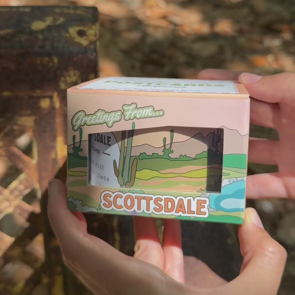 The soul of Scottsdale, captured in a candle. Dark Rose, Cactus Flower, and Orange Citrus evoke the feeling of being there-real, vivid, and unforgettable.